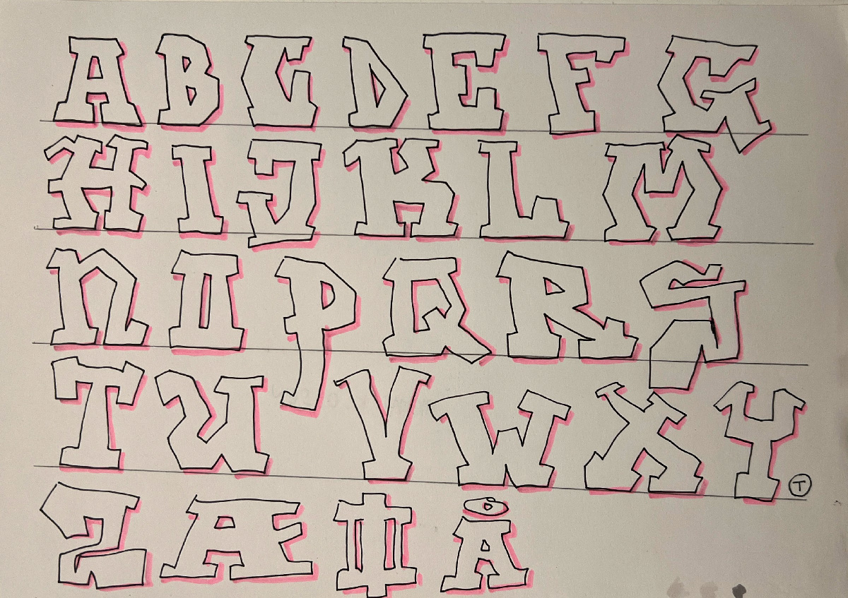 A4 tegning. Signert bakpå. og buemerke på forsiden.